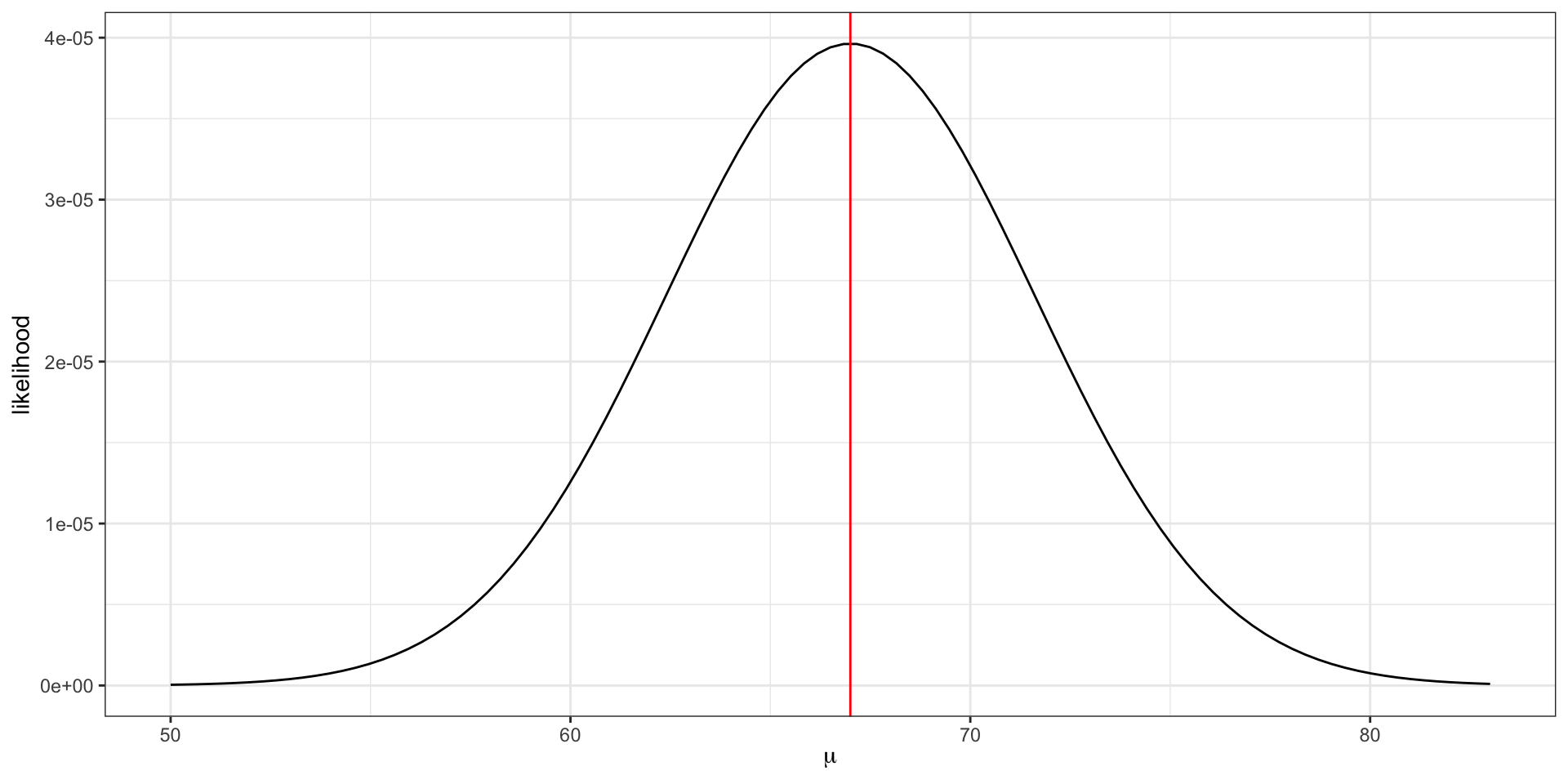 \[L(\mu) = f_x(75 |\mu) \cdot f_x(58|\mu) \cdot f_x(68|\mu).\]